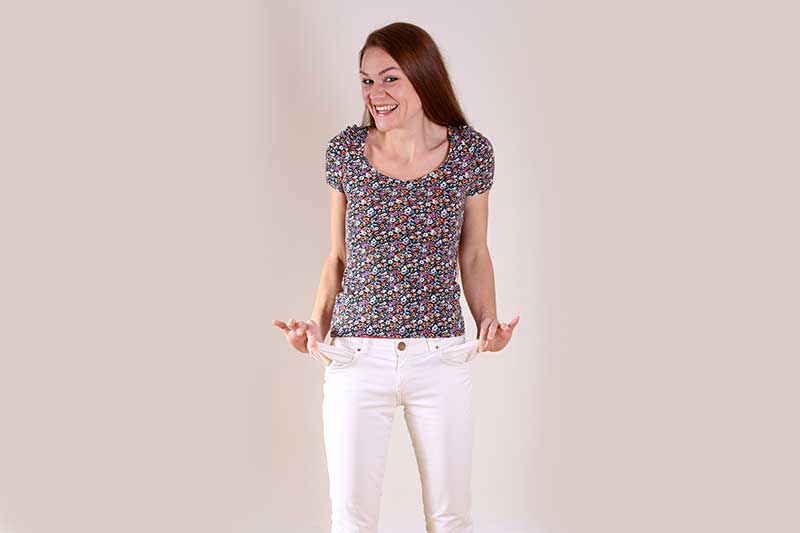 Ne glede na to, kaj se nam v življenju dogaja, se lahko temu nasmejimo in tako svoje misli hitreje preusmerimo k iskanju rešitve. Tudi takrat, ko nimamo denarja. Izvlečemo si prazne žepe in se smejimo temu, da ni nič v njih.