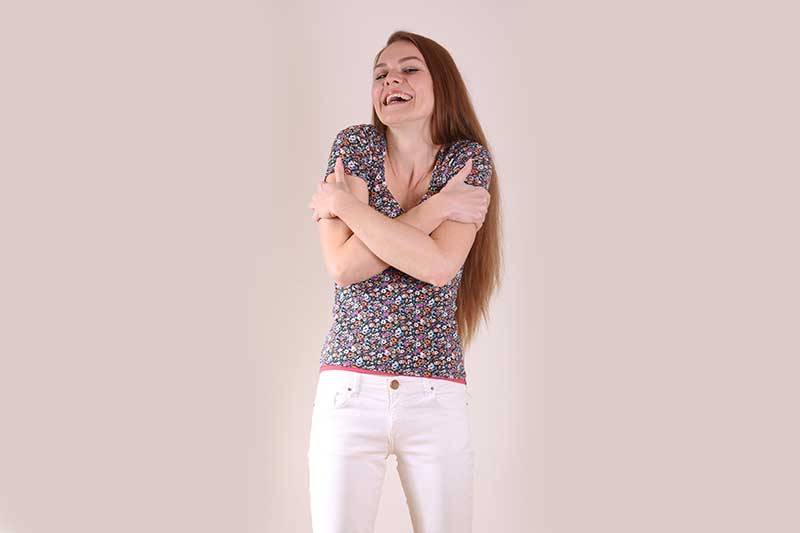 Najbolj pomembno je, da imamo najprej radi sami sebe in se sprejemamo. Šele nato lahko damo ljubezen drugim in smo jo tudi sposobni sprejeti. Objamemo se z obema rokama ter se sami s seboj smejimo.